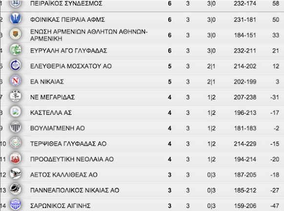 Η βαθμολογία (σε 3 αγωνιστικές)