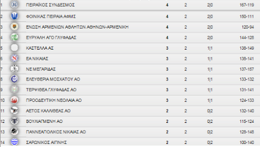 Η βαθμολογία (σε 2 αγωνιστικές)