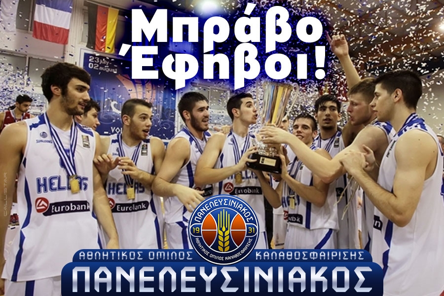 Η Διοίκηση, οι παίκτες, οι προπονητές κι όλοι οι φίλαθλοι του Πανελευσινιακού οφείλουν να δώσουν τα συγχαρητήρια σε όλους τους έφηβους αθλητές της Εθνικής, στους προπονητές και στην Ελληνική Ομοσπονδία Καλαθοσφαίρισης κι ένα μεγάλο ευχαριστώ!