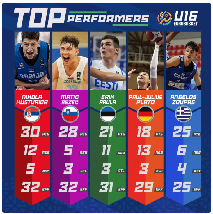 Έπειτα από πέντε διαδοχικούς τελικούς σε Eurobasket U16, η Ισπανία έμεινε εκτός τετράδας! Υπεύθυνη για τη 2η έκπληξη των προημιτελικών ήταν η Λιθουανία, η οποία νίκησε την Ισπανία 93-90 με τυχερό τρίποντο του Κούκτα (με ταμπλό) από τα 9 μέτρα 0,8” πριν από το τέλος, με τον ίδιο τρόπο δηλαδή που είχε αποκλείσει 2,5 ώρες νωρίτερα και η Ιταλία τη Γαλλία! Μόνο κατά τύχη βέβαια δεν έφτασε στο σημείο να αποκλείσει την πανίσχυρη Ισπανία η “Λιέτουβα”, σε έναν σχεδόν απόλυτα ισορροπημένο προημιτελικό, με 13 αλλαγές προβαδίσματος, στον οποίον η “ρόχα” κυριάρχησε κάτω από τα δύο καλάθια με τα ύψη της (33-49 τα ριμπάουντ, 32-52 οι πόντοι μέσα από τη ρακέτα), αλλά στο τέλος τη διαφορά την έκανε η ευστοχία των Λιθουανών πίσω από τα 6,75μ. (11/21 τρίποντα).