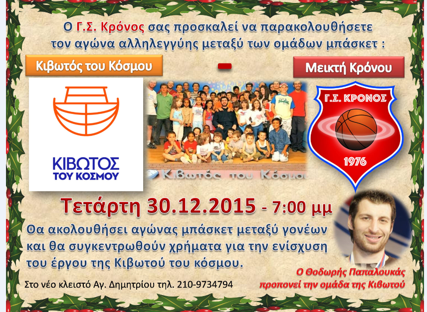 ΠερισσότεραΑγώνα αλληλεγγύης θα δώσει ο Κρόνος Αγίου Δημητρίου απέναντι σε αυτήν της Κιβωτού του Κόσμου στο